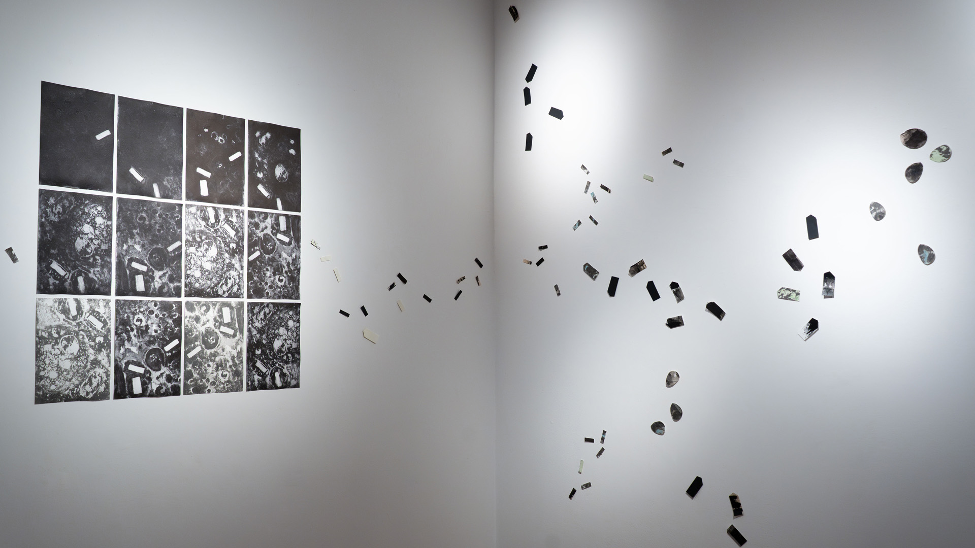Tres video-instalaciones (una en un proyector y dos en pantalla LED) se integraron al espacio junto con una serie de fotolitografías e impresiones digitales Fine Arts.