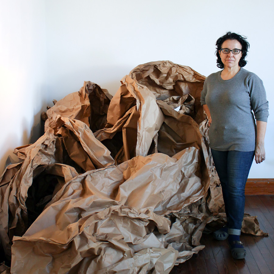 Esta obra forma parte de la serie Relicarios y nació con la idea de armar el árbol genealógico de mi familia. Buscaba un elemento común a los niños de todas las generaciones y recordé los sapitos de papel con los que jugaba en los recreos, un juego universal que ignora fronteras y tiempos. Este objeto, que se reprodujo infinitas veces y que se desarmó o desintegró con la lluvia o sucumbió a la planta de un pie, fue el elegido para contar la realidad efímera de la vida.
