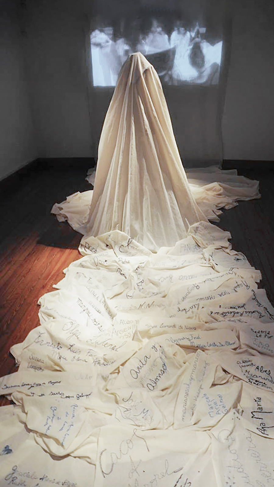 Subiendo las escaleras de entrada, se encontraba la obra de Joseph Kaplan (Colombia/EEUU). En diálogo con ella, en el Hall Central, la Zorica Vasic (Serbia/Canadá) expuso sus ilustraciones transformadas en piezas objeto gracias a un particular tratamiento del papel con látex. La instalación y vídeo Persiguiendo la memoria de Peter Liashkov (Francia/Arg/EEUU) invadió el Espacio de Diálogo con obras gráficas, documentos y objetos más un vídeo de su performance realizada cada día de su residencia. Finalmente, la instalación El Rezo de Monica Camin (Arg./EEUU) realizada en colaboración con una comunidad de artistas y participantes argentinos que integraron los Círculos de bordado y con el video-documentalista Kaloian Santos Cabrera, invadió -de forma audiovisual- el espacio de la Sala Políglota.