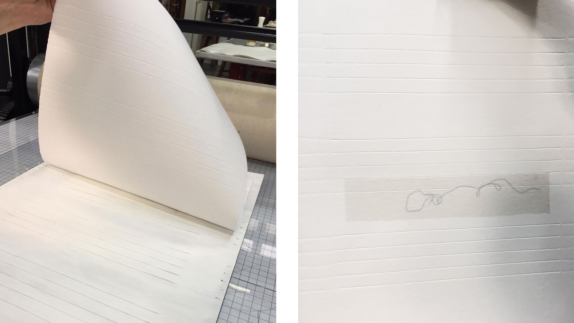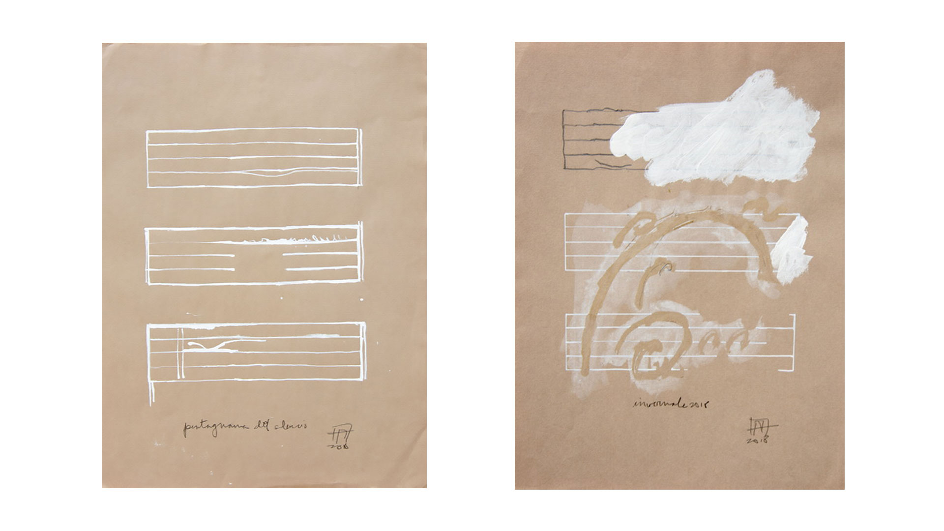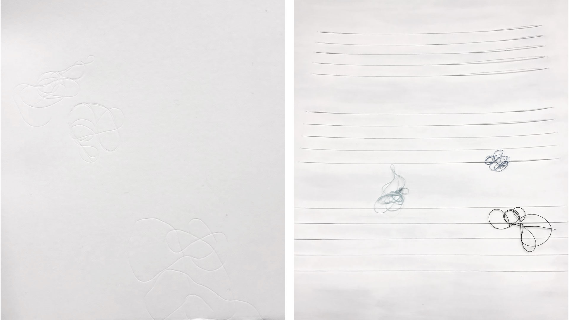 Los Pentagramas del silencio nacen originalmente del dibujo y la escritura musical. Me dediqué a pensar en la fijación escrita de los ritmos, de los mapas en la danza, en los dibujos, en el aire. De todo eso, existían vueltas, sonidos y movimientos que no dejaban rastros y que eran las memorias más potentes. Así llegué a crear Pentagramas del silencio, ellos narran gestos que no han dejado trazo.