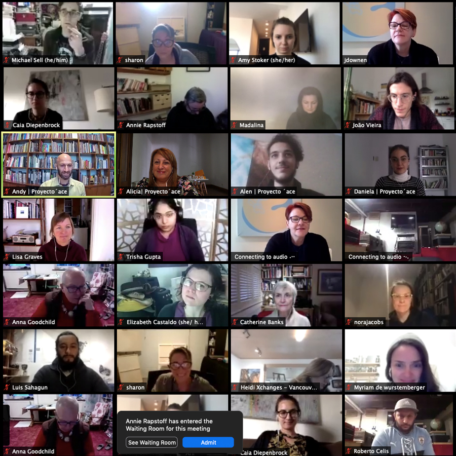 A través de 4 encuentros de FRONTIER (cohorte en inglés) creamos colectiva e individualmente ideas y piezas artísticas que exploraron un enfoque no binario del tema. Los artistas participantes también tuvieron la posibilidad de dialogar con Kristina Borg y Liz Ingram & Bernd Hildebrant, artistas internacionales y ex-artistas en residencia de ´ace, invitados a presentar sus aportes y exploraciones en relación al tema. Para esta sesión también dimos prioridad a los momentos de revisión por pares o retroalimentación colectiva y a discusiones abiertas que derivaron en temas de arte y terapia, arte e investigación, arte participativo, la complejidad de la colaboración artística y cómo la práctica colectiva pareciera ser un derecho a reclamar, aún más en momentos de aislamiento.