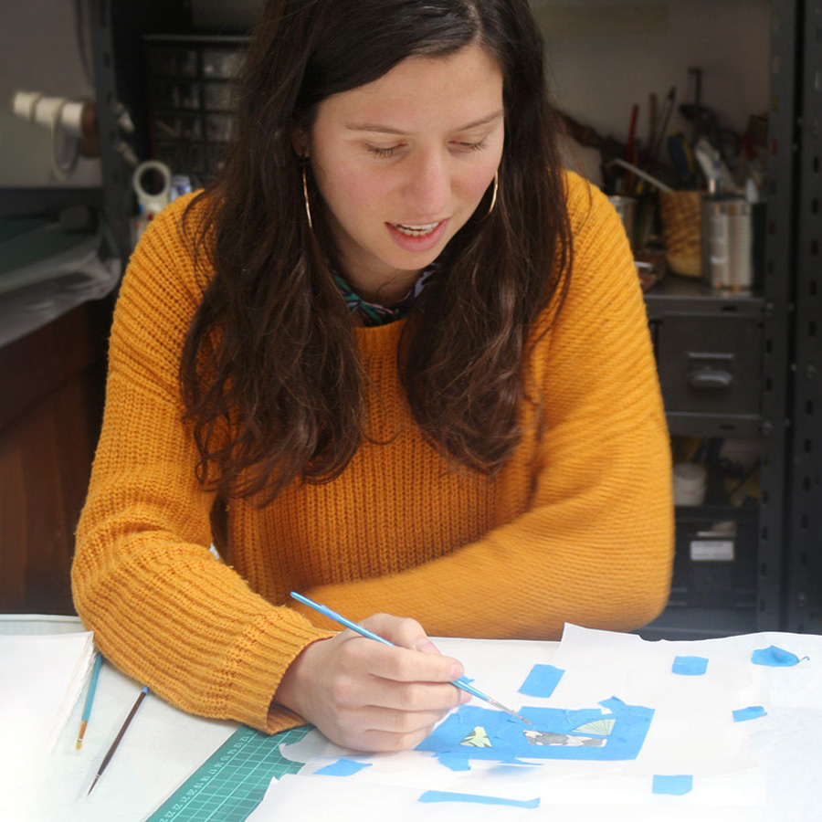 Trabaja en ilustración y Producción en Artes Visuales.