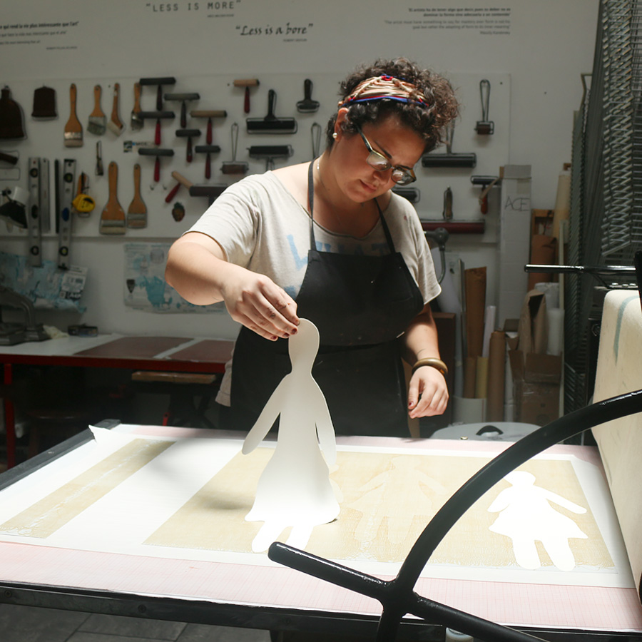 Para expresar estos sujetos, utilizo la simbología de un lenguaje personal. Mediante el bordado y técnicas de grabado tradicional logro reflexionar acerca de heridas, suturas y cicatrices emocionales, originadas a partir de ciertos acontecimientos del pasado dentro del núcleo familiar. Estas cicatrices son lo que también reconocemos como el equipaje o mochila con el que cada uno carga.