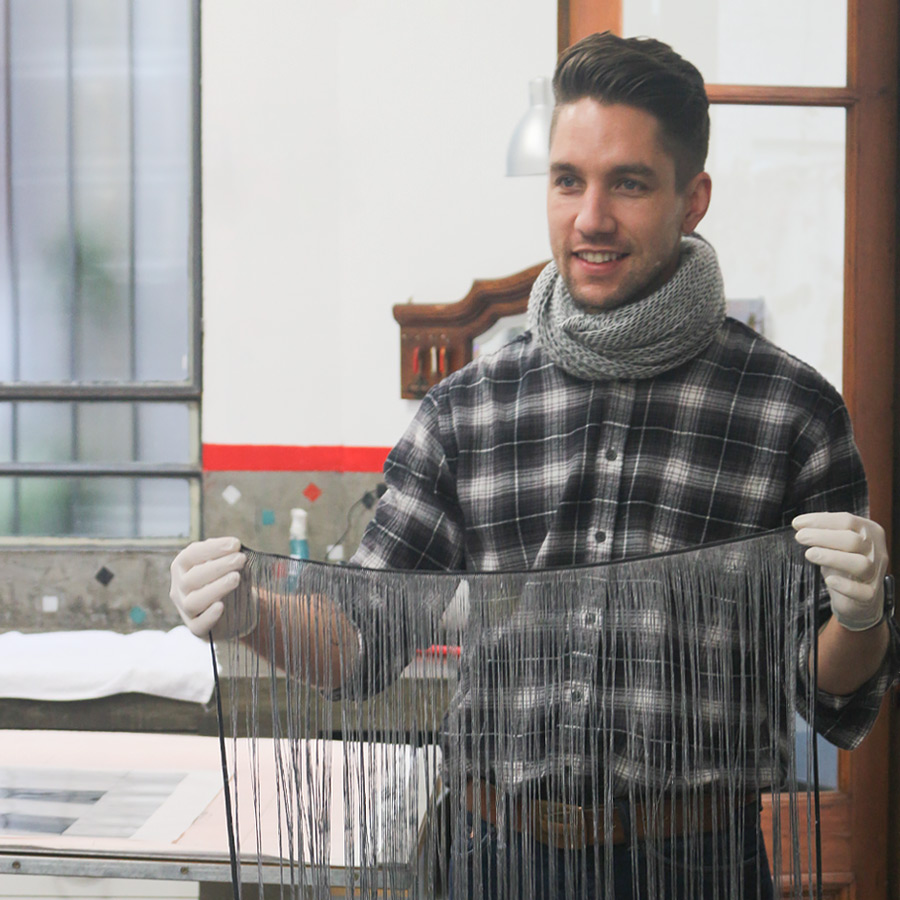Charlie Hanson (EE. UU.) compartió piezas de Tranquilidad caótica, una serie de grabados inspirados en su tiempo en Buenos Aires. Cada obra, compuesta por 70 imágenes individuales, representa el estado caótico de su mente cuando viaja; la emoción de asimilarlo todo y las ansiedades que ello conlleva. La paleta de colores de cada obra es representativa de la amplia variedad de emociones Charlie sintió durante su estancia en Buenos Aires.
