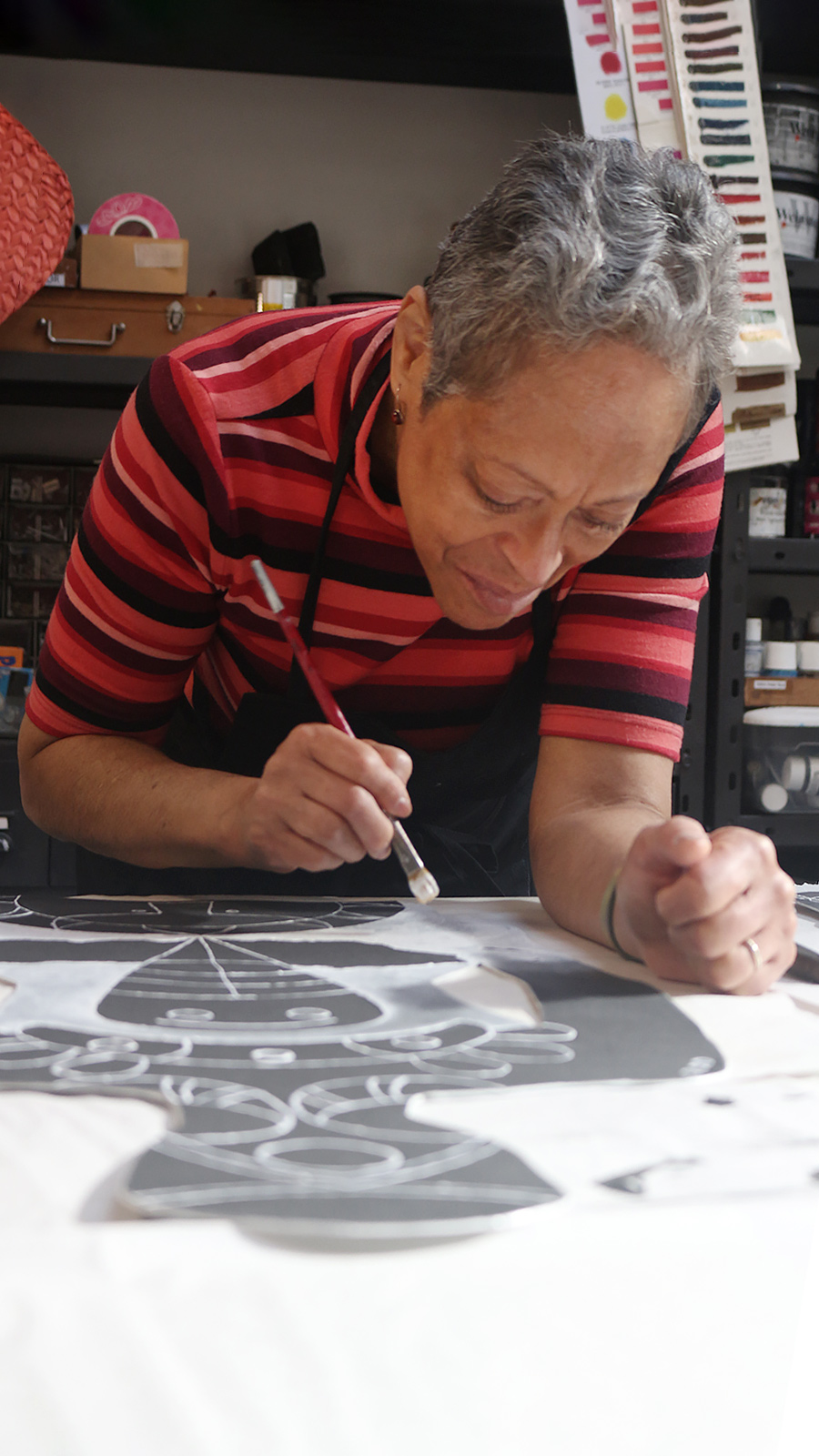 Mi intención es conectar los dos continentes; África, y América del Sur, a través de detalles contemporáneos, geografía antigua, y similitudes humanas básicas que señalen “unidad/unicidad”. He visitado Argentina una vez en el pasado y encontré una familiaridad antigua y genuina. Quiero producir una serie de obras en papel que demuestre mis observaciones y conexiones a través de la metáfora, alegoría y comparaciones lúdicas. Además, mi trabajo es variable, en movimiento, sigue la ola de la inspiración, de esa manera evoluciona y se transformar en el proceso.