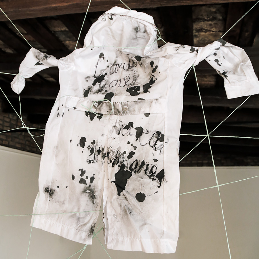 Intrusión, la instalación que la artista Marcela Casals realizó en el mezzanine-hall central de ´ace, es una magnífica pieza escultórica realizada con papel misionero de embalar. La artista construyó la pieza como si estuviera componiendo una fuga en música. Comienza con una “frase” que se va desarrollando a lo largo del espacio, en el cual utiliza una polifonía vertebrada por contrapuntos.