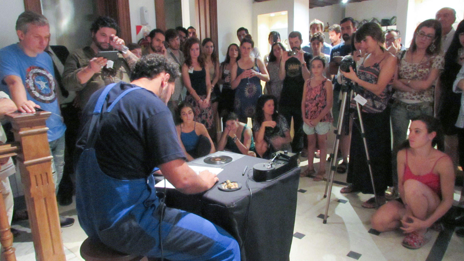 Durante el ´aceNITE de Abril, 2016, Roberto Celis realizó una performance en el Hall Central de la Fundación´ace, al tiempo que inauguramos la obra de los artistas en residencia Andrea Saltini (Italia), Rachel Tanugi Ribas (Brasil) y del grupo inQubarte.