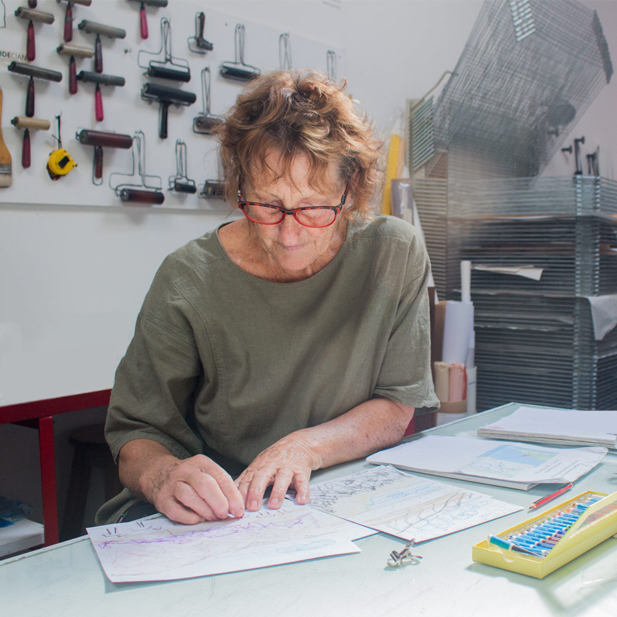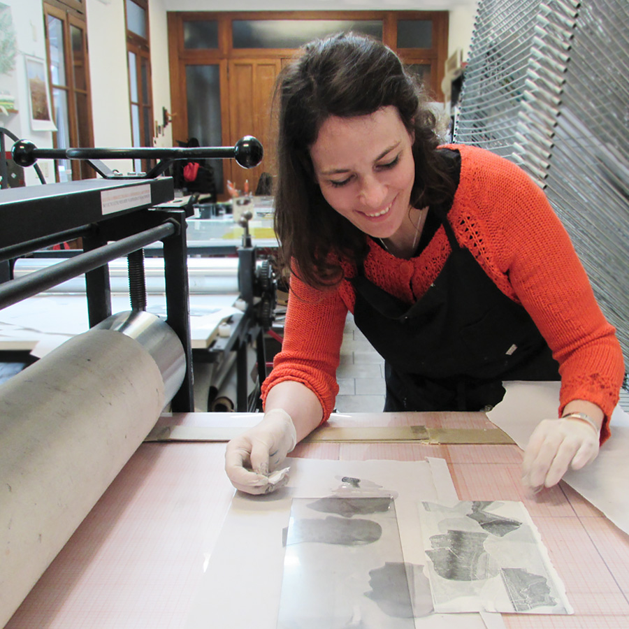 Mi ciclo de trabajo más reciente está inspirado en la novela “La Pasión según G.H.”, de Clarice Lispector. La naturaleza singular de su escritura es cercana a la de James Joyce (cuyo Ulises inspiró un cuerpo de obra anterior), pero la prosa de Lispector está infundida con la cultura y la filosofía de Brasil, donde vivo actualmente. Los últimos meses estuve enfocada en trabajar con monotipos, que brindan una gran libertad, dentro de ciertas restricciones técnicas, y ahora estoy interesada en llevar este medio más allá. Estoy particularmente feliz de pasar tiempo en Buenos Aires, entender más acerca de la Argentina y obtener inspiración del gran Julio Cortázar y su “Rayuela”.