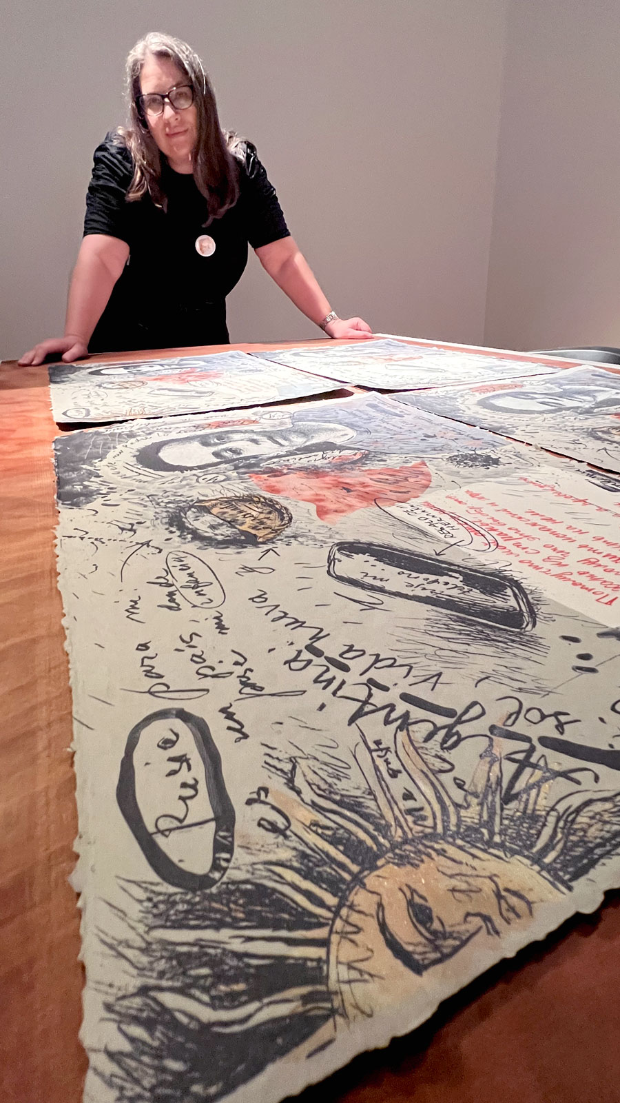 Desde Chicago (EE: UU.), Valerie Downs presentó La Precaria, una serie de delicadas piezas en papel hecho a mano perforado con agujas e intervenido con materiales poco convencionales como su propio cabello, pelos de ciervo, óxido y tierra. Su obra propuso un cuestionamiento íntimo y contundente sobre aquello que suele ser desechado, resignificando lo frágil como potencia estética. Desde otra perspectiva, el fotógrafo también norteamericano Fredrik Marsh compartió Estoy perdido para el mundo, un proyecto nacido en un cementerio de la Toscana y volcado al papel mediante la técnica de litografía sin agua. Sus imágenes, realizadas con un escáner manual rudimentario, evocaron intimidad, memoria y la conciencia de nuestra propia mortalidad.