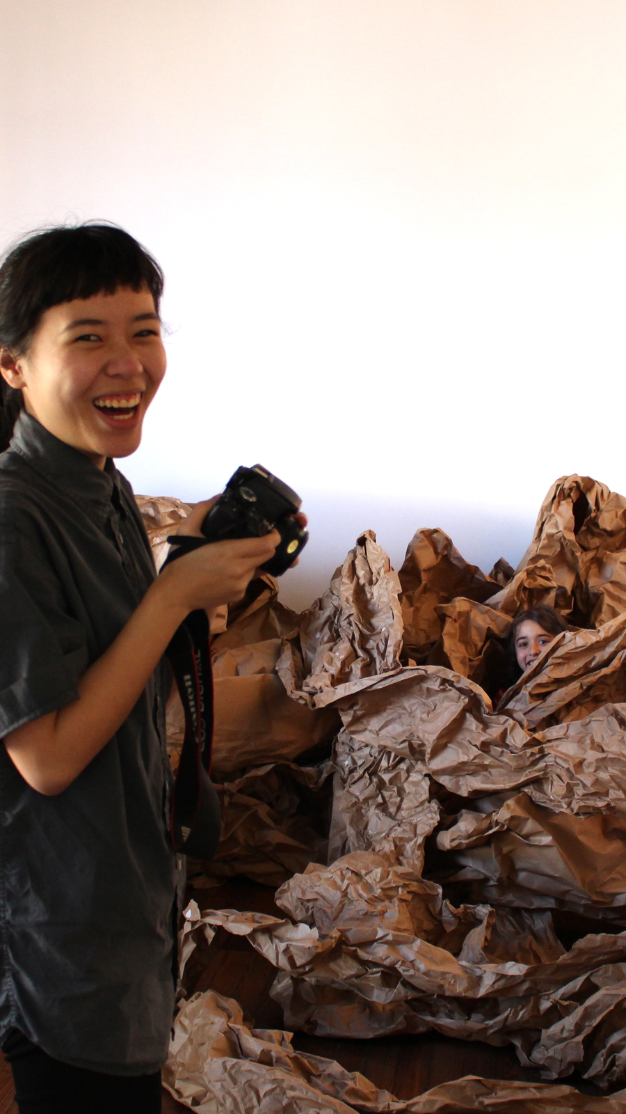 My first individual project was a simple exercise in free association so to let the hidden manifest. The second one, with a partner, explored trust and play and spontaneity_ as in bare feet communicating with each other. The last collective project was conceived as dissolution of shelter, a communion in the dissolution of language, for a non-language, so that silence and unintelligible sound could be heard. Painting came back, as erosion of what was before.